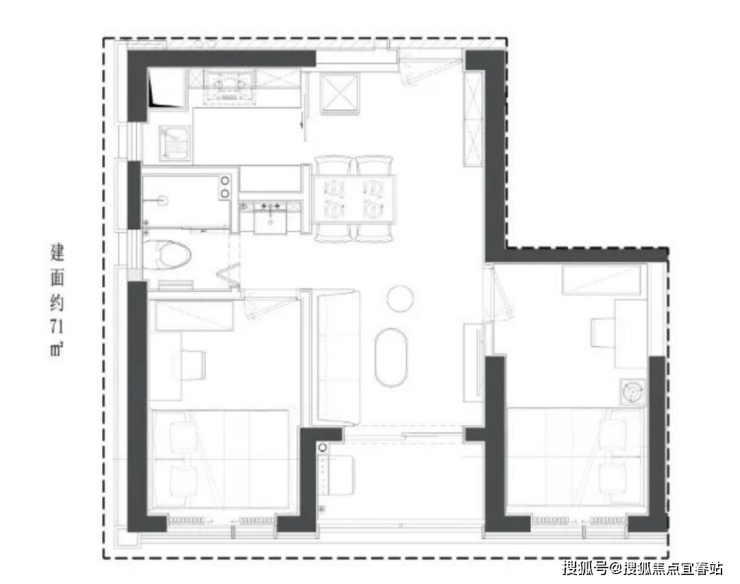 推售产品: 建面约44-71㎡ 1-2房公寓产品