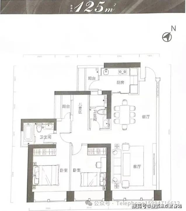 建面约125㎡大三房:宽敞舒适,拥有更多的生活空间,适合追求高品质生活的家庭。