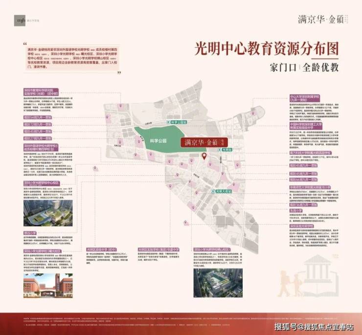 满京华金硕悦府,位于深圳光明中心区核心位置,紧邻光明科学城这一国家级科技创新枢纽,坐拥科学公园首排景观(占地约208万平方米),是光明科学环廊的重要组成部分,片区定位为深圳北部新中心,依托光明科学城的科研产业规划,未来将聚集大量高端人才与资源,区域发展潜力突出。