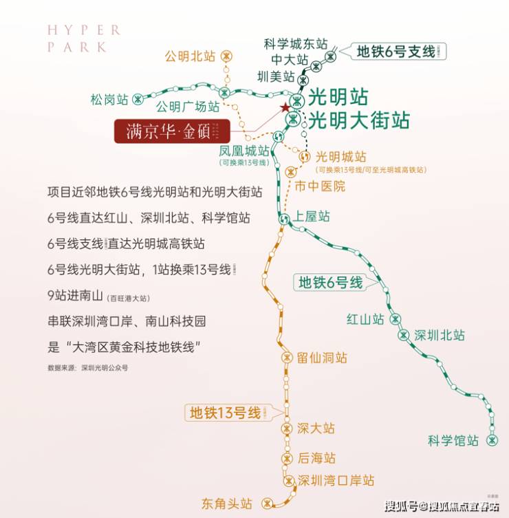 交通配套:项目距6号线“光明站”约800米,步行11分钟可达。2站到凤凰城站换乘13号线,4站至光明城站接驳高铁站与6号线,6站抵宝安上屋,11站达南山西丽留仙洞,14站到南山高新园,18站至后海。此外,龙大、南光、深圳外环高速环伺,快速串联全城。
