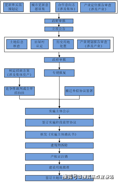一是更新意愿征集,确定申报主体,包括征询原产权人意见、划定城市更新范围、制定产业定位方案。