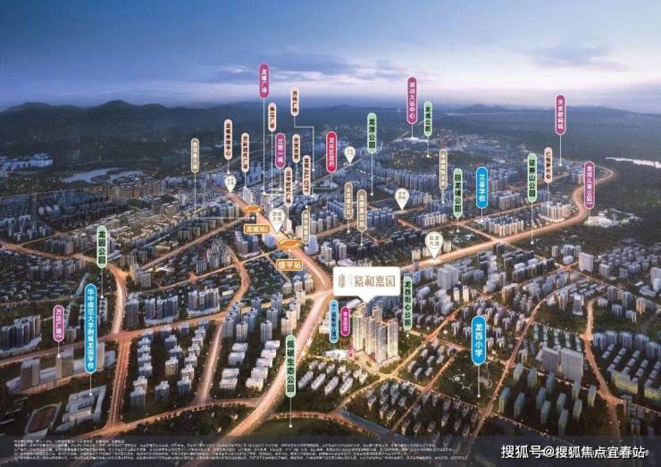 项目自带12班幼儿园,根据2022年教育局划分,小学学区划分在龙西小学,距离约450米,中学学区划分在华中师范大学附属龙园学校初中部,距离约1.2公里。西侧不到1公里的位置有规划54班制学校,具体开建的时间尚不确定。