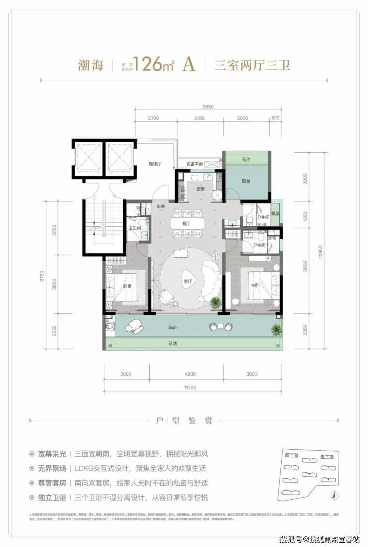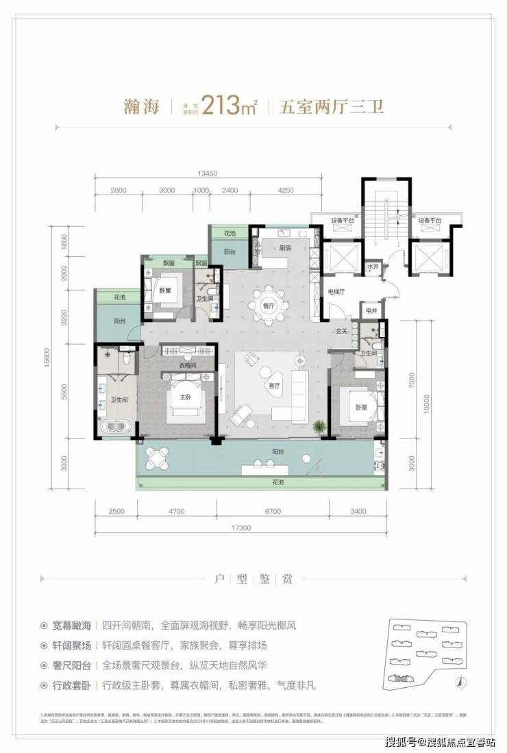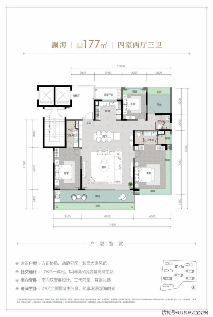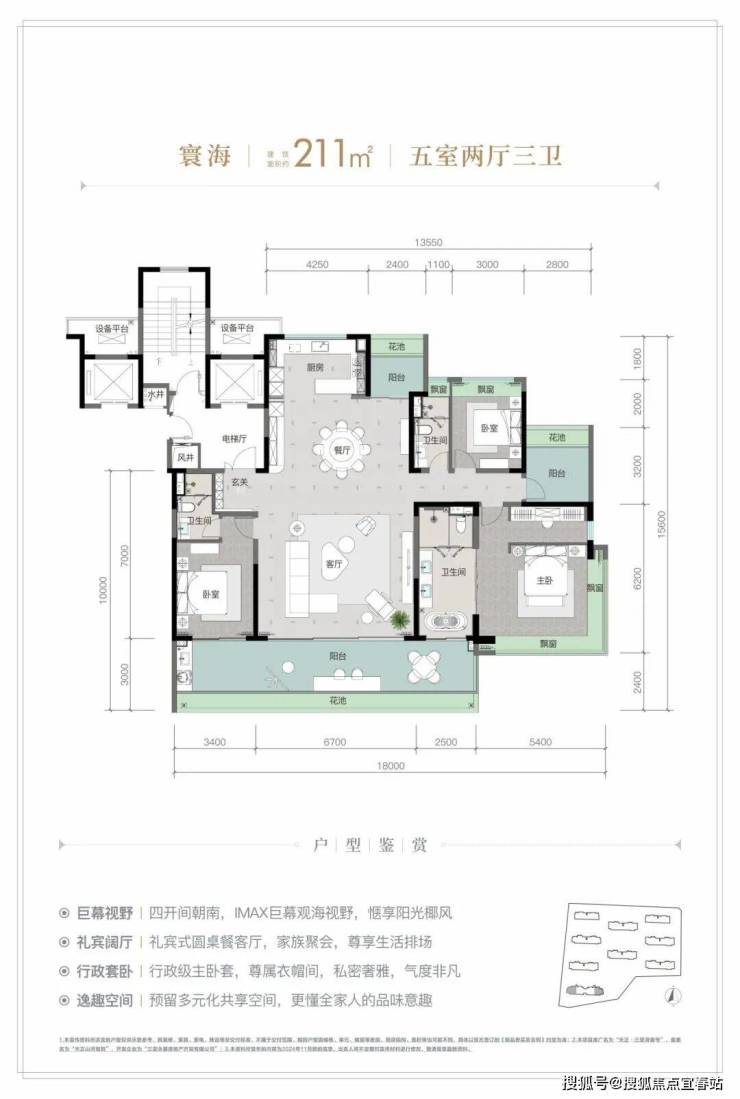 规划建筑面积约126-213㎡观海奢装大平层,约3.1米阔绰层高,部分户型创新设计270°全景飘窗主卧套、四开间朝南等,全成品高标奢装,营造全新舒居体验。