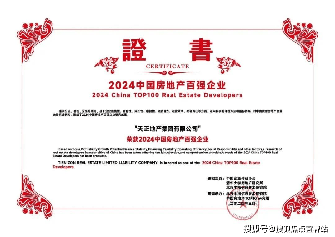 天正地产集团,房地产开发一级资质企业,业务覆盖房地产开发、园林景观、物业服务等多个领域,产品涵盖高端改善住宅、精品公寓、商业综合体等多种物业形态,2024年荣登中国房地产百强企业榜单。(奖项来源:中指研究院)