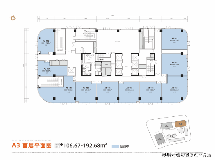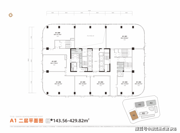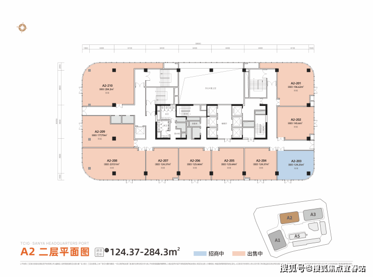 当前北区建面约328-348㎡ 5A办公空间、105-429㎡ 中央商务金铺,现房在售、同步招商