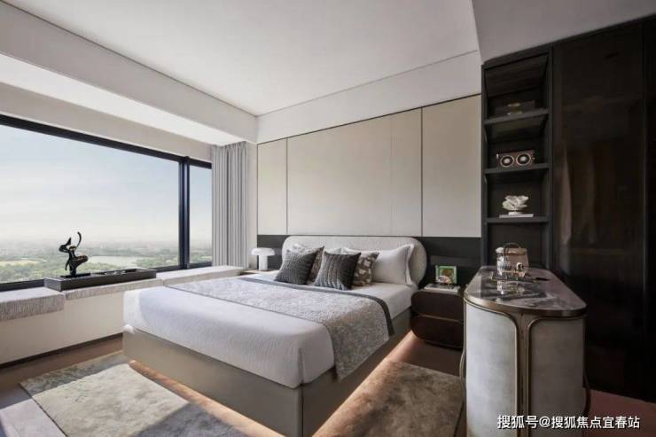 使用面积高达约27㎡的酒店式主卧套房,还设有步入式衣帽间、景观大飘窗,尊奢感拉满。