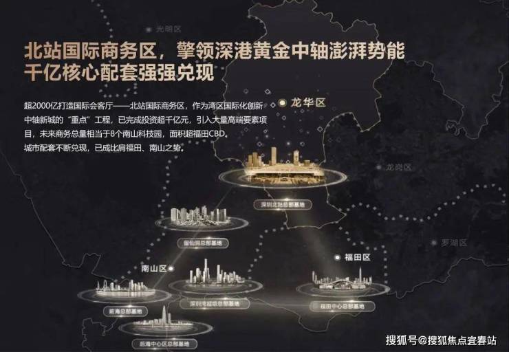 湾区中轴桥头堡,都市核心区,国际创新中轴新城;北站总部基地,政府重点建设,发展比肩福田、后海。