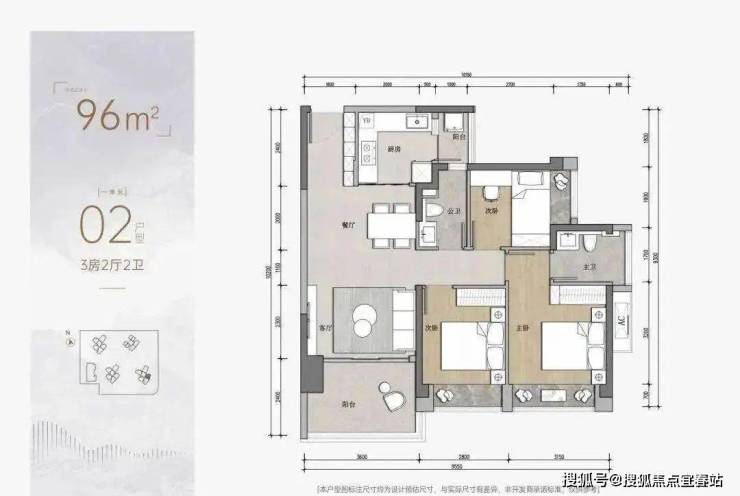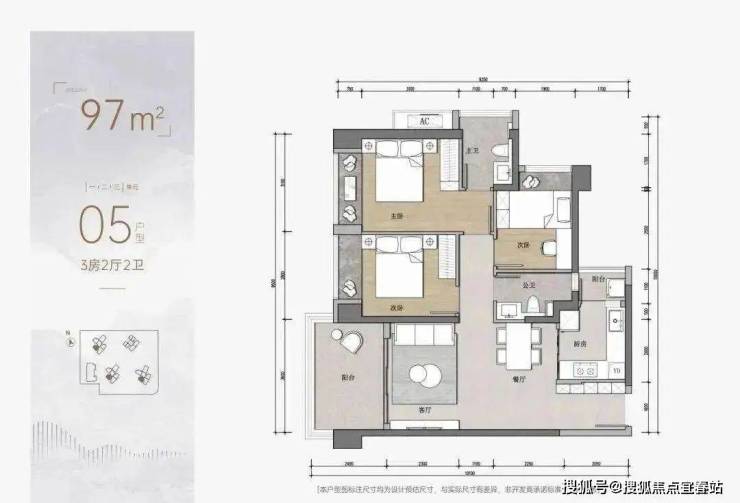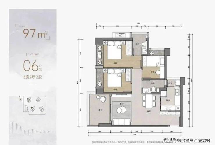 3房为97平3房2卫的户型