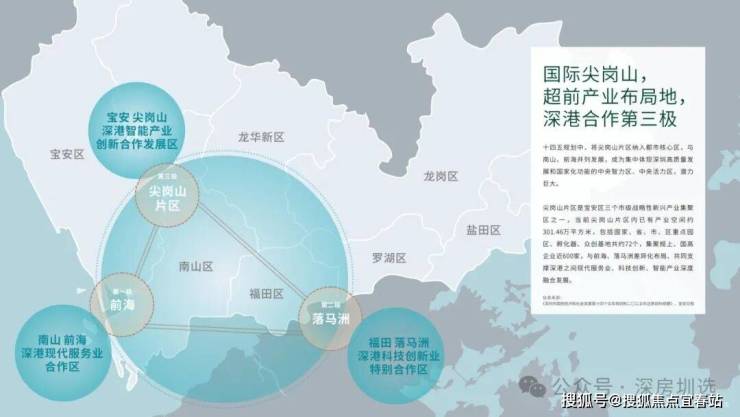 十四五规划中,宝安区发展定位再升级,尖岗山片区纳入都市核心区,依托“智能”制造业优势,打造深港合作第三极,释放约500万㎡产业空间,集聚约115万高精尖人才,助力片区焕新升级。