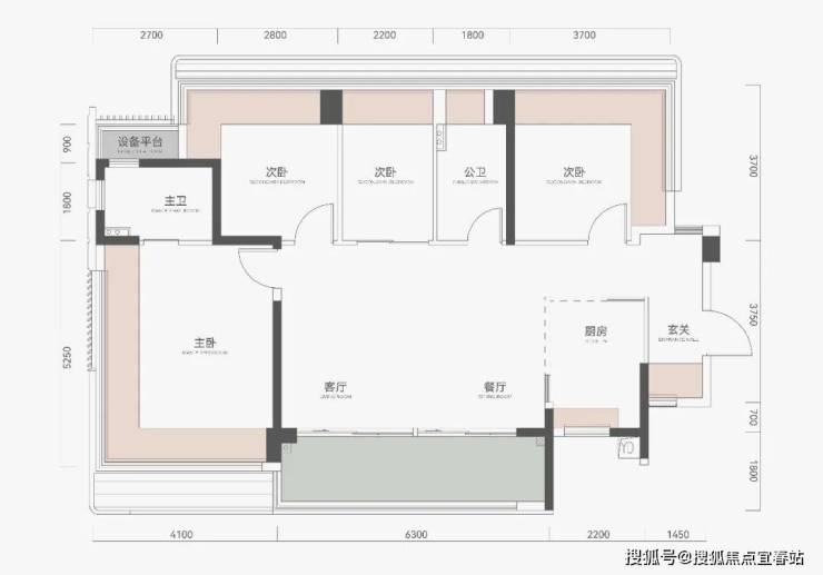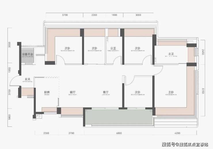 主卧套房+次卧类套房设计,提升家庭各成员居住尊严。
