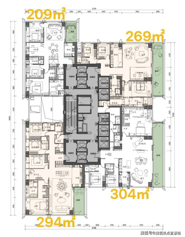 以上户型均为四房(2套房)