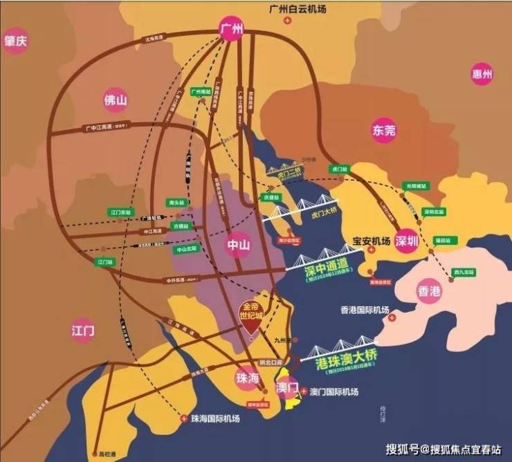 金帝世纪城项目地址位于广东中山坦洲毗邻香港、澳门、横琴自贸区,享受一小时粤港澳生活圈,度假在珠海、娱乐在澳门、购买在香港的轻松之旅。