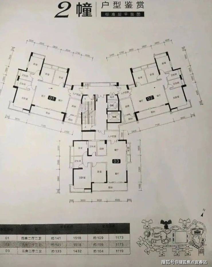 01、02:建筑面积141㎡、东南朝向、四房两厅两卫