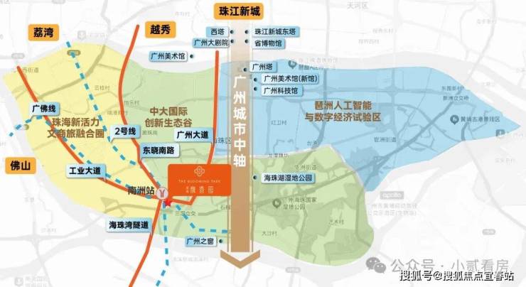紧邻2号线和广佛线换乘站南洲站,直线距离仅一百米,可以说出门就是地铁站。