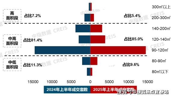 图:2025年1-6月30个代表城市各面积段住宅销售套数占比数据来源:中指数据CREIS(点击查看)市场监测:https://u.fang.com/ytcrnn/