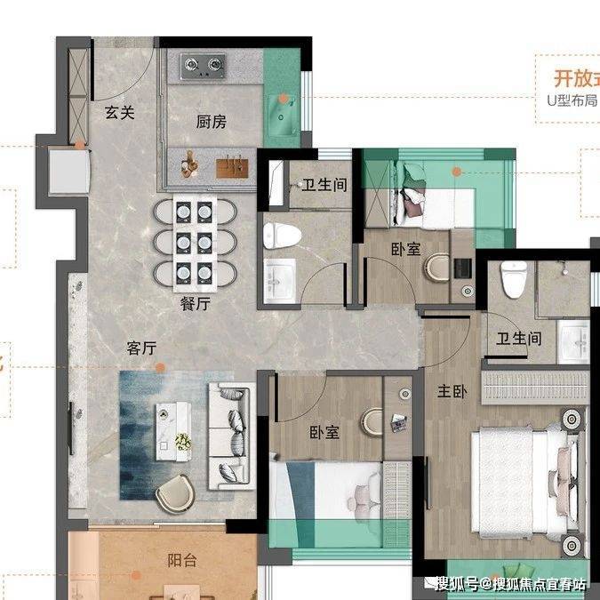88㎡三房两卫:主卧带独立卫生间,避免早上 “抢厕所”,入户花园能改书房或储物间;