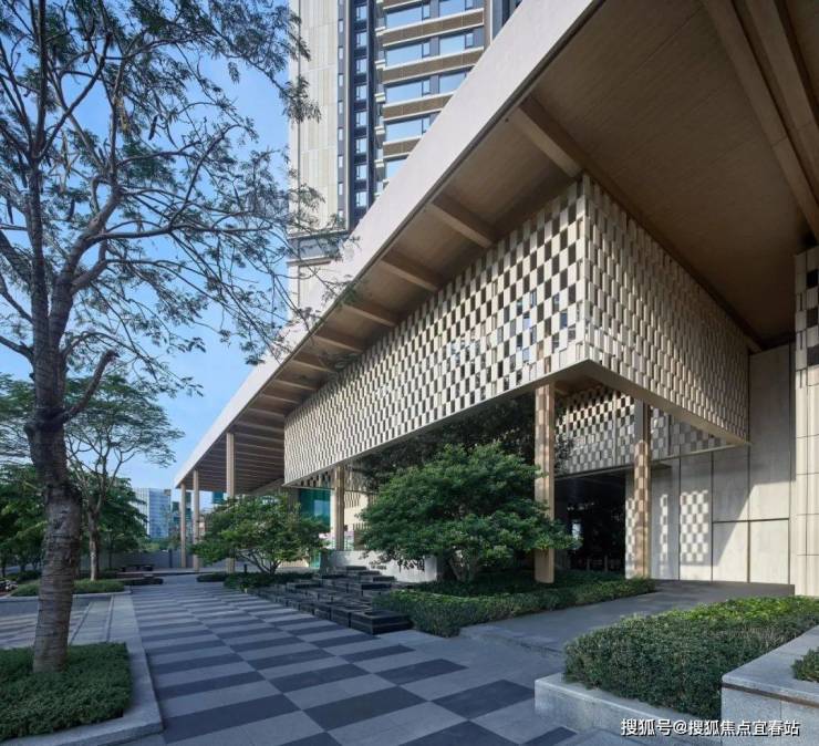 单元大堂的设计风格与社区整体风格相协调,注重营造温馨、高雅的氛围。采用高品质的石材基座、香槟金色金属雨棚,以及造型灯和简单的园林小景,提升大堂的美观度和文化氛围。