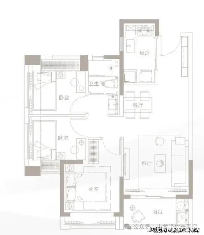 建面约79㎡ 3房2厅1卫