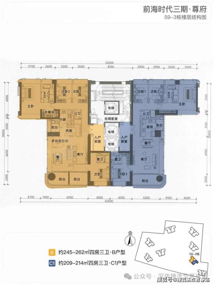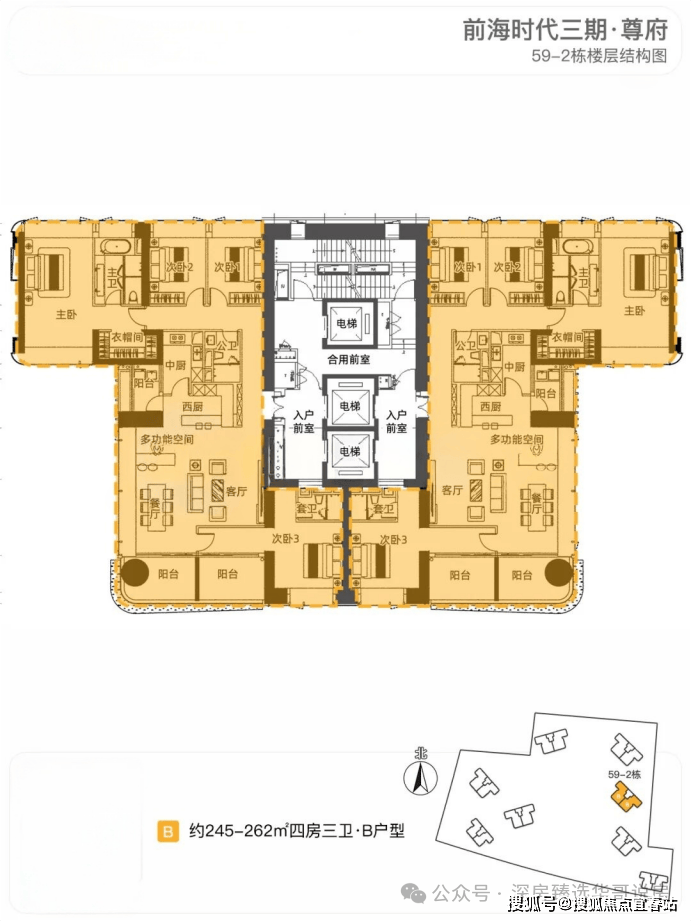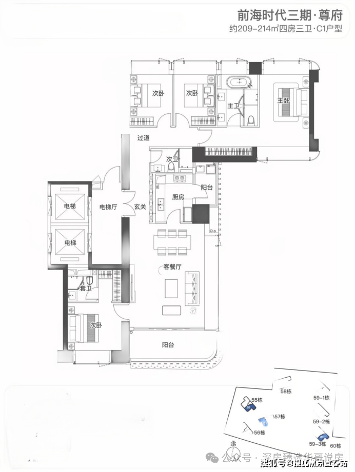 前海时代三期」即将加推最后214-296㎡大平层户型,为7-2地块中59栋的三个单元(59-1、59-2、59-3栋),预计2026年底简装交付。