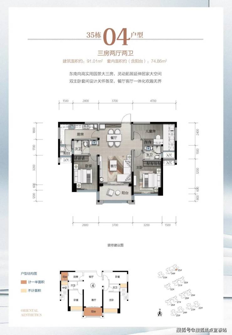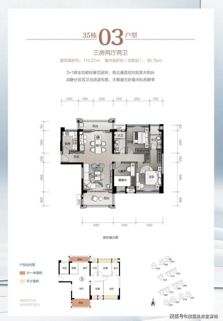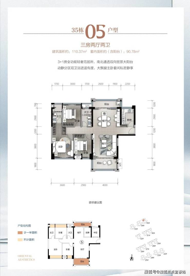 逸骏半岛三期35栋新品,建面约91-110㎡,以更小的建筑面积,巧思匠造,实现空间阔绰灵动变化、户户南向采光充沛的大三房、3+1房。