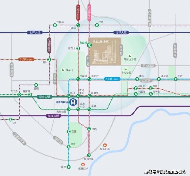 交通配套极为便利:近地铁10号线冬瓜岭站,3站可达福田CBD。项目通过立体交通系统,整合了地铁、公交、自驾多种出行方式。