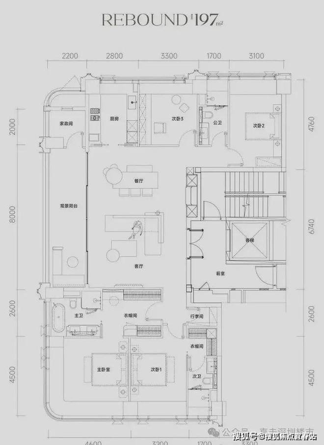 主力户型为186-247㎡,主打T2/T3楼型