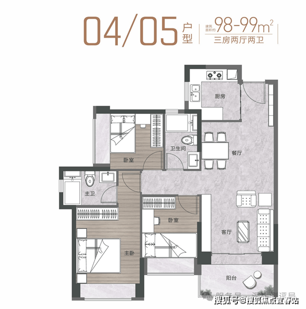 99㎡的3房2厅2卫,折后总价578-608万/套,单价5.83-6.14万/㎡。
