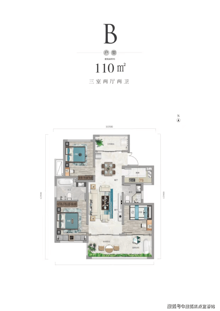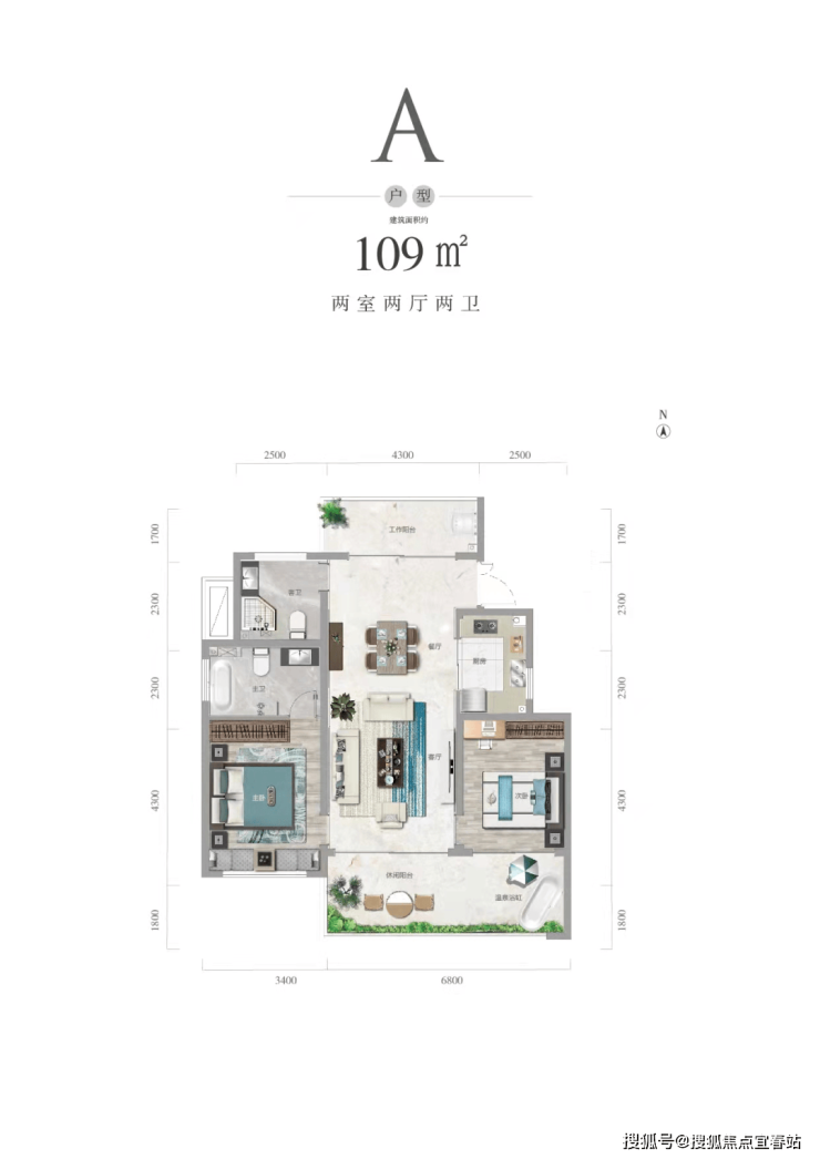 【主力户型】建面约109㎡两房两厅两卫双阳台
