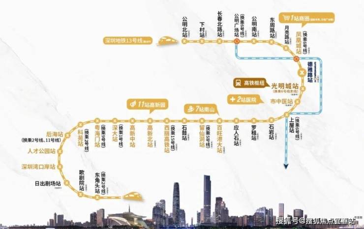地铁13号线(在建中):最优黄金科创线,7站南山,直达南山留仙洞、科技园、深圳湾,高效通勤线路