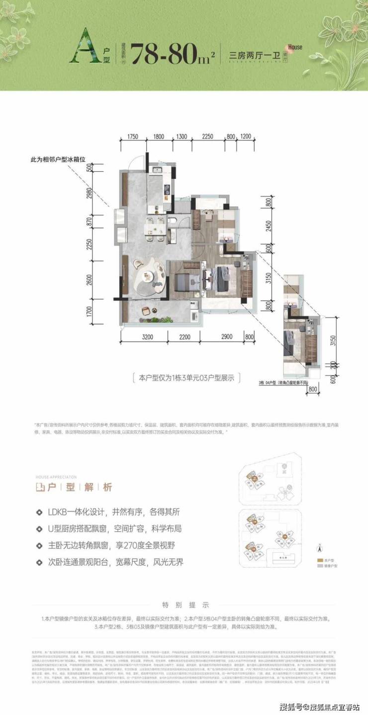首次推首北地块1栋3单元,约80-92㎡ 3房,共195套,新规使用率高达96%-105%!