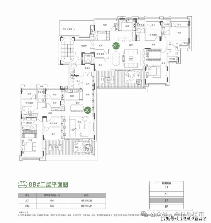 ●上叠为3-4层,3层主要作会客功能,4层休息区功能纯粹
