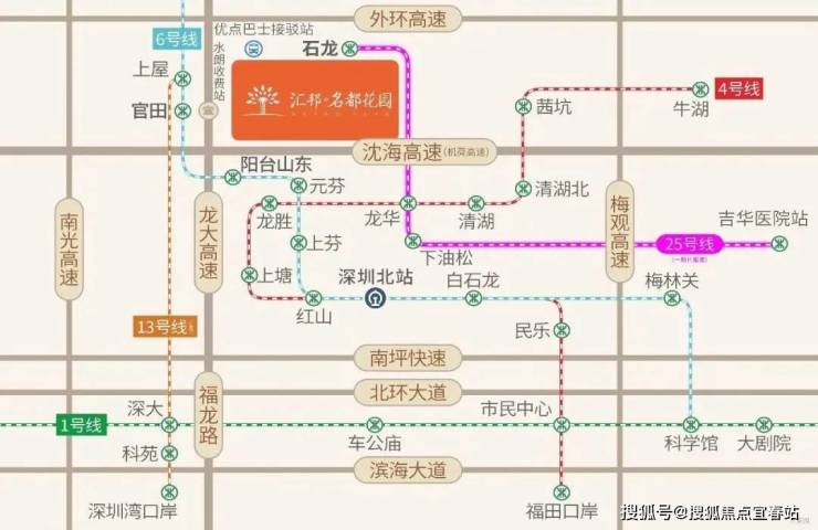 汇邦名都花园,畅享龙大/南光/广深/沈海(机荷)高速,临近地铁6号线/13号线(在建中)/25号线(一期已报建),6条短线优点巴士地铁接驳、3条快线直达各中心区。
