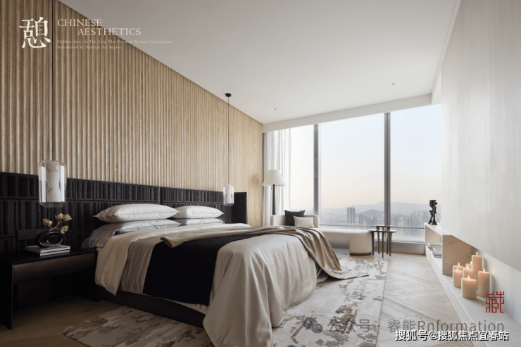 延续素净雅致的空间主调,临窗minibar和浴室共享迷人的都市山海景观,营造放松的度假式体验。整个卧室的色调柔和而统一,共生、圆融共同造就东方梦境般的生活。