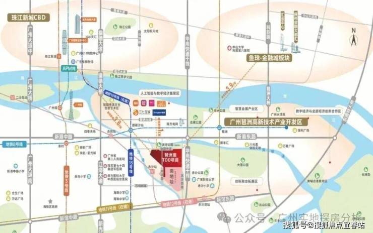 项目位于海珠区琶洲南板块,东侧紧挨华南快速干线,北侧隔着黄埔涌,珠金琶构成的湾区核心金三角上,广州少有的优质资产。