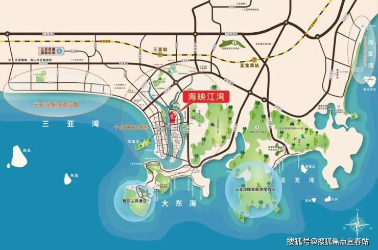 🚗便捷交通:海映江湾项目位于河东路,北接迎宾路,南至鸿洲游艇码头,居三亚城市主干道解放路与凤凰路之间,距离三亚湾直线距离仅1.3公里,距离三亚汽车站约1.4公里,车程约6分钟,距离三亚凤凰岛约2公里,距离大东海旅游区约5公里,车程约13分钟,距离凤凰国际机场14公里,车程约37分钟。距离海棠湾约26公里,车程约40分钟。