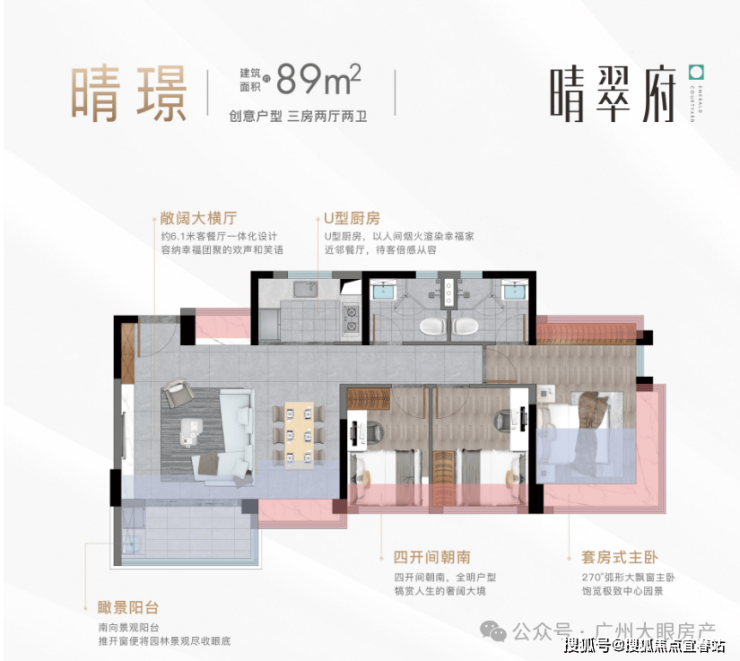 户型:建面约76-130 ㎡三至四房宽景臻品