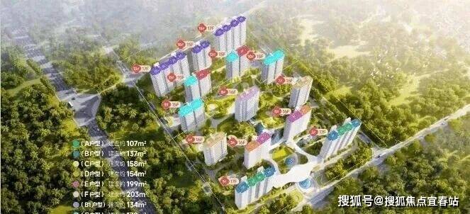项目占地面积约57885.7㎡,建筑面积约为119173.26㎡, 容积率为1.4,绿化率为40%。共14栋住宅产品,共计554户。共计6个户型:A户型建面约107㎡,B户型建面约137㎡,C户型建面约158㎡,D户型建面约154㎡,E户型建面约199㎡,F户型建面约203㎡。
