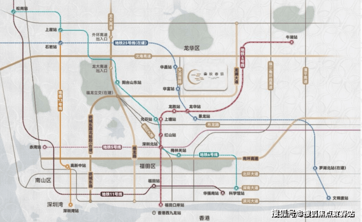 江叠映春语落子龙华,位于粤港澳大湾区发展中轴与深圳城市中轴的交汇区域,其“地理核心”位置带来了交通便利,构成了通往全城各核心区域的“半小时辐射圈”,真正做到“左右逢源,四方通达”。