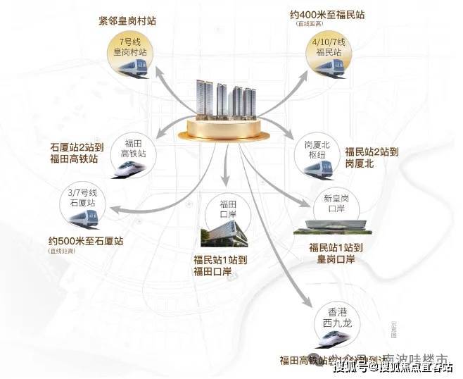 ·1站双口岸 ·2站福田高铁站 ·2站岗厦北枢纽 ·双地铁口 四地铁线
