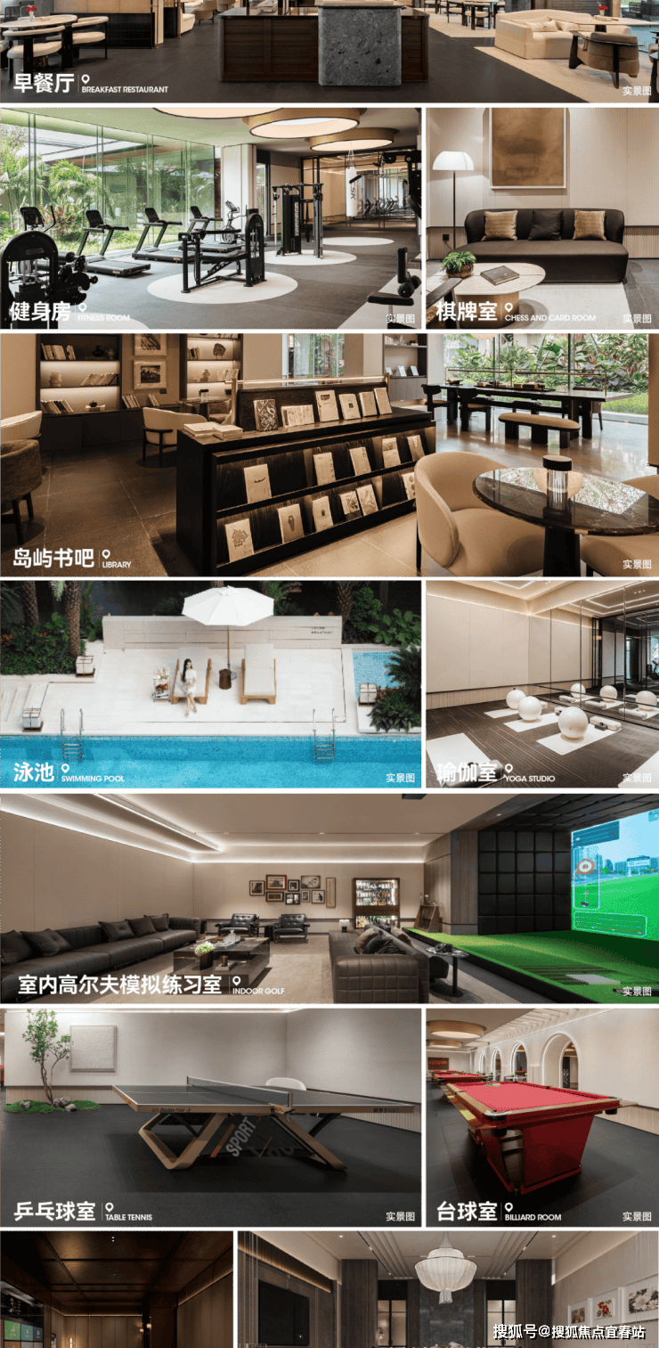深度剖析高端酒店基因,创造功能与美感共融的9大社交空间,涵盖早餐厅、岛屿书吧、棋牌室、瑜伽房、健身房、近千平米度假式双泳池、KTV、私宴厅,配备约400㎡球类运动区,涵盖绅士运动桌球、国球乒乓球、全球社交通用语言——高尔夫模拟练习室等多元功能区,为旅居改善客群提供奢适服务。