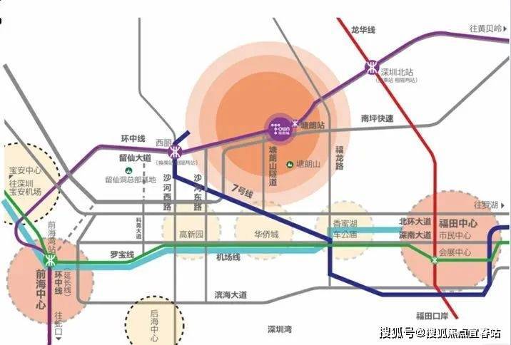 深圳北、西丽双高铁枢纽核心,五号线塘朗地铁站无缝连接,地面交通三横三纵,通达全市