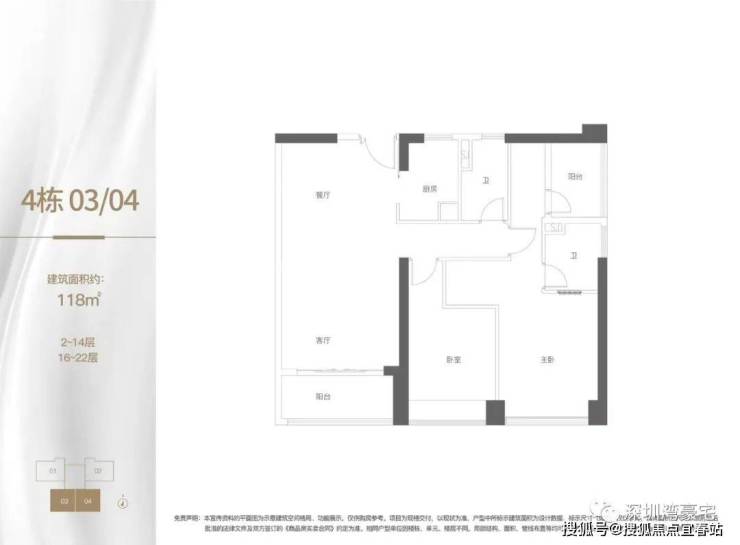 2-14层:一层4梯8户 其中四户是94㎡的两房,四户是133㎡的三房