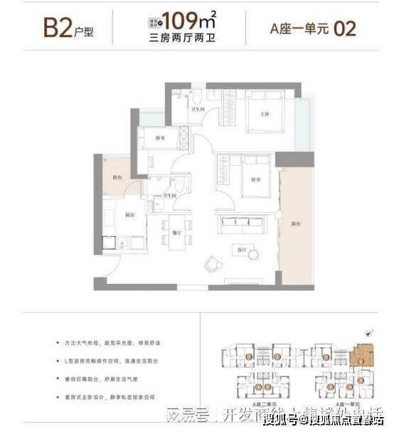 109㎡3 房 2 厅 2 卫:竖厅格局,客厅 3.5 米开间,LDKB 一体化,动静分区,客厅连接次卧出巨幕大阳台,L 型厨房带生活阳台,卫生间干湿分离,阳台东北朝向。