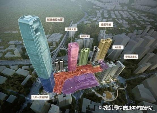 凌云华府项目由1栋81层高端商务写字楼(云投大厦),1栋48层研发办公楼(高投大厦研发办公楼),1栋36层公寓,1栋54层云端住宅(凌云华府),3栋46-60层保障性住房(青云苑)。