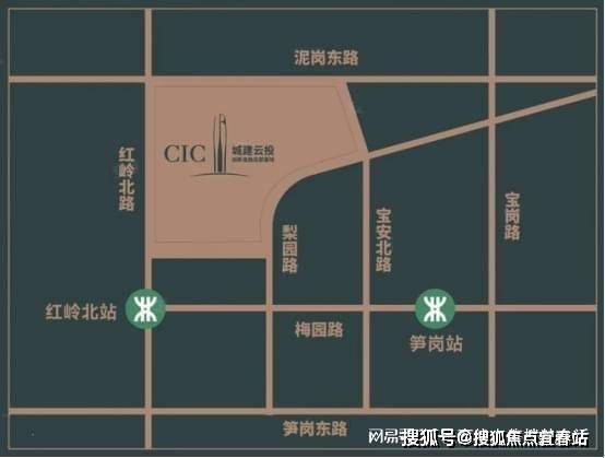 交通配套:坐拥三大地铁线路,直线 700 米内有地铁 7 号线、9 号线交汇的红岭北站,以及 7 号线、17 号线(在建中)交汇的笋岗站,可便捷抵达蔡屋围、华强北等区域。周边直线 1km 内有 36 个公交站,距离最近的宝安北路口站仅有 262m。临近泥岗东路等城市主干道,可快速接驳北环大道,交通便利。