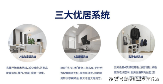 3大优居系统:人性化家装系统、便捷茶水间系统、高效收纳系统;