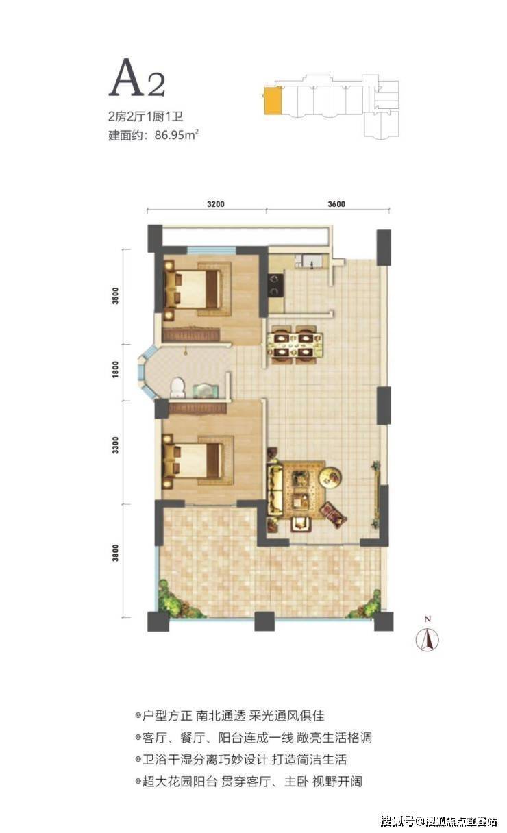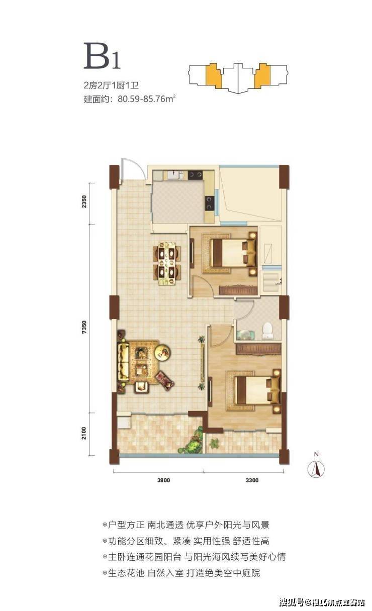 ——————✨【产品价值】✨——————在售户型面积80-88㎡两房,户型方正,南北通透。