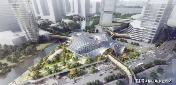 湾流曲线的幕墙体系,9.9米尊玺塔冠,还有一座全市首创,挑高达11米的城市浮岛。