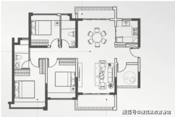 126㎡3+1房做到了双阳台设计,南北对流,而且还做到了四开间朝南,通风和采光都要优于其他户型。