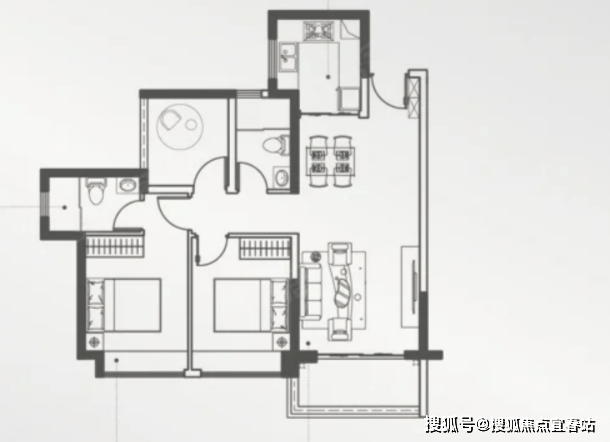 89㎡2+1房户型格局跟80㎡户型很相似,主要的区别在于朝向不同,89㎡2+1房户型是南向,通风和采光更佳,而且还做到了双卫,居住的舒适度会更好。
